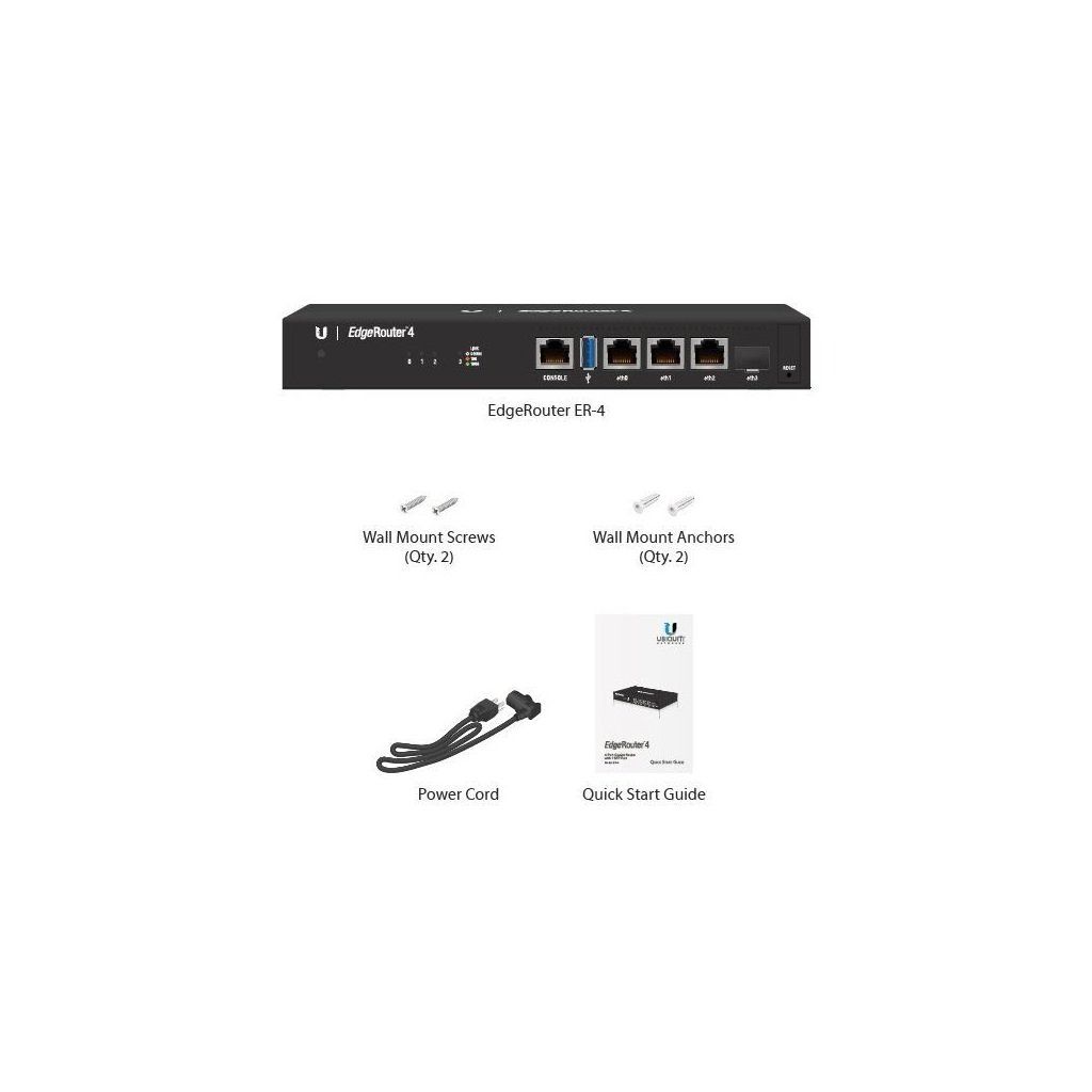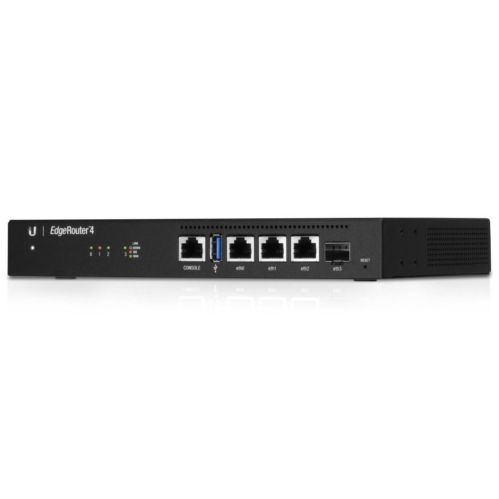 EdgeRouter 4 kombinuje vysoký routovací výkon až 3,4 milionů packetů/s, spolehlivost, zabezpečení a pokročilé funkce v cenově dostupném provedení. Výhodou je SFP port pro připojení do optické sítě.