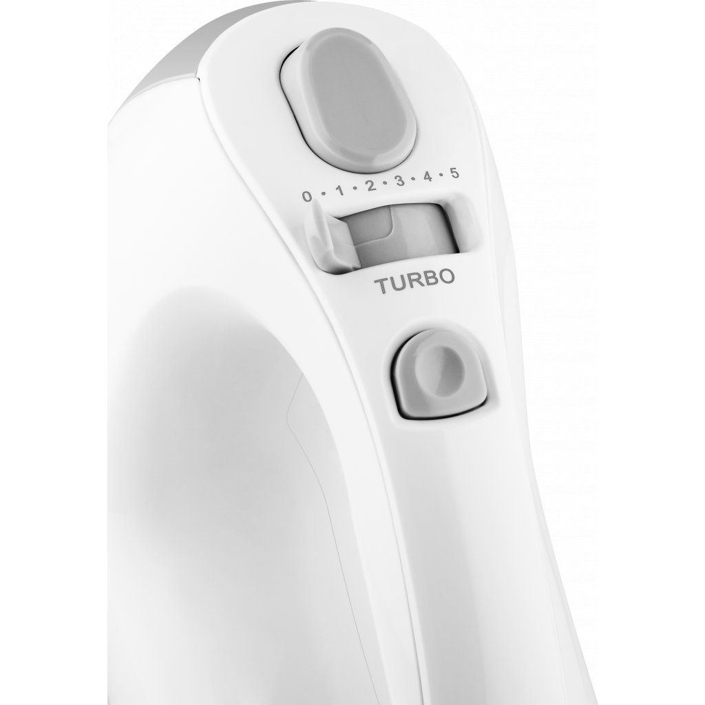 Stojan s motorově poháněnou otočnou mísou v kombinaci s protiskluzovými nožkami zajišťují dokonalou stabilitu přístroje během provozu. Plastová 3,5l mísa pojme dostatečné množství surovin. Díky praktickému víku, nebudete mít během šlehání a hnětení suroviny všude po kuchyni. Zůstanou pěkně v míse, kam patří. Využít můžete 5 nastavení rychlosti. Díky otočnému přepínači lze rychlosti plynule regulovat jedním prstem. Velmi příjemným bonusem je tlačítko TURBO, kterým aktivujete funkci Turbo Boost a přepnete rychlost na maximum. Tuto funkci využijete například při šlehání bílků či šlehačky.