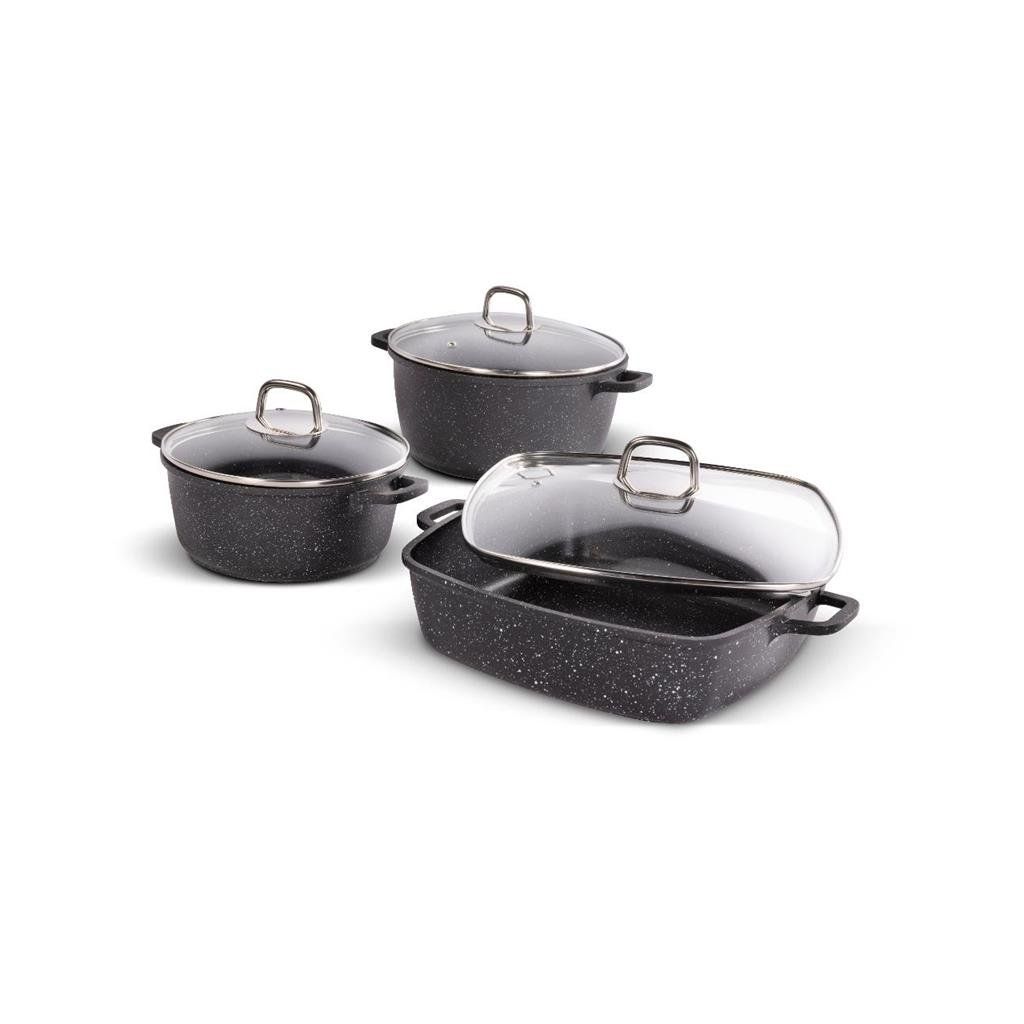 - Obsah sady: 6 dílů (2 kastroly s poklicemi, 1 pekáč s poklicí)