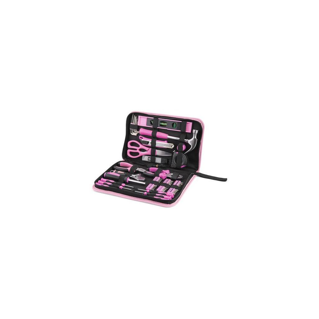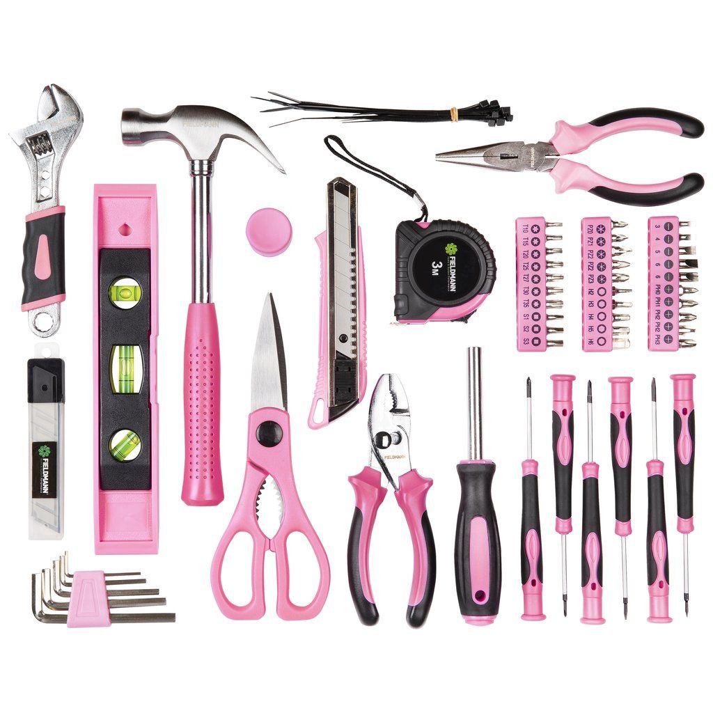 Stylová růžová brašna FIELDMANN v sobě ukrývá 71 dílnou sadu nářadí, která se bude hodit nejen každé kutilce, ale též každému členu domácnosti nejen v rodinné dílně, ale též na zahradě. Sada obsahuje šroubováky, bity, kladivo, kleště, nožík, svinovací metr,vodováhu a spoustu dalšího vybavení, bez kterého se praktická žena v domácnosti prostě neobejde. Jednotlivé nářadí je vyrobeno z odolného materiálu a opatřeno pohodlnými ergonomické úchopy.