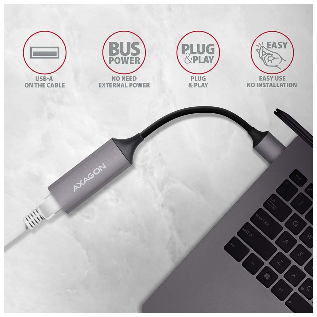 Axagon ADE-TR, USB-A 3.2 Gen 1 - Gigabit Ethernet síťová karta, auto instal, titanově šedá
