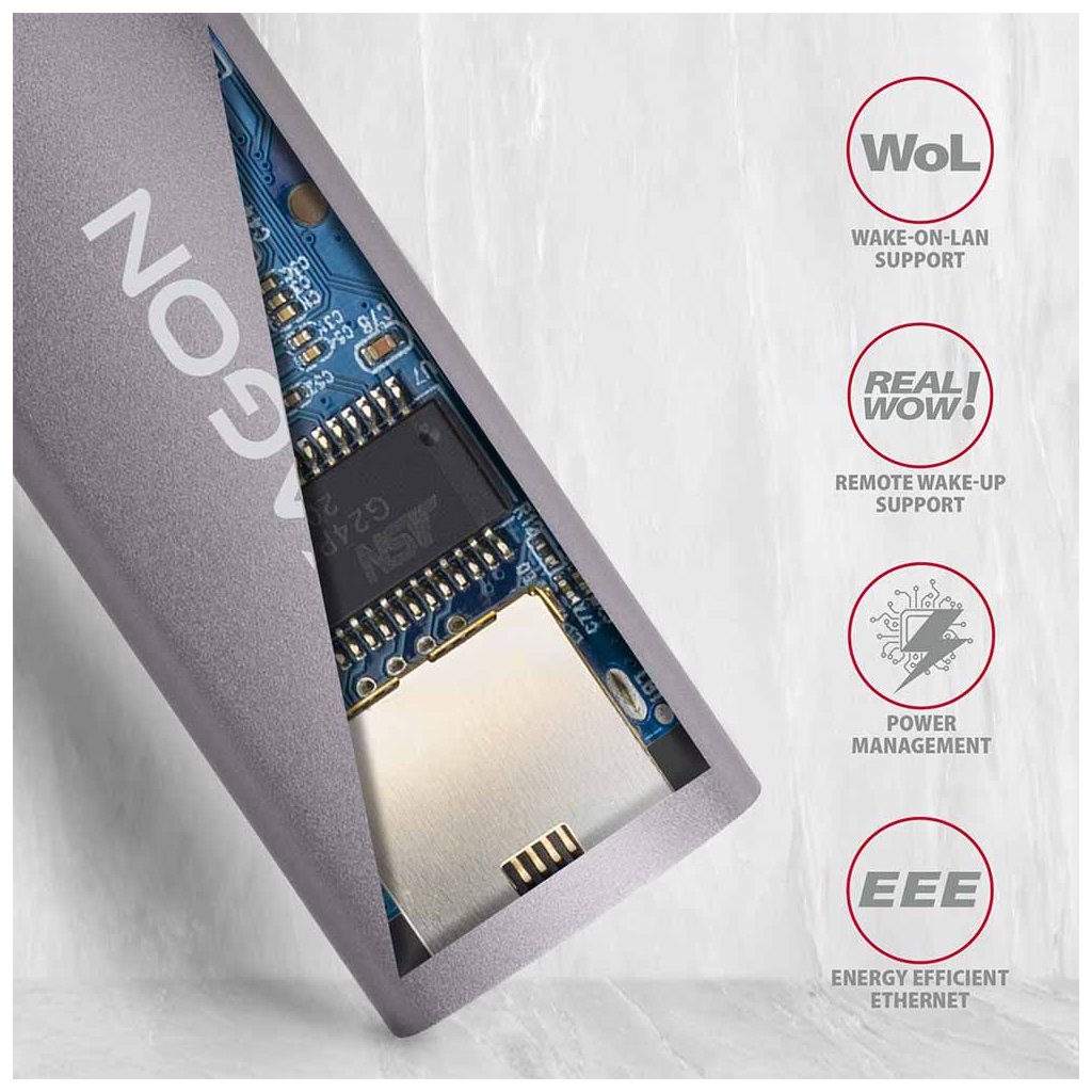 Adaptér podporuje pokročilou správu napájení redukující ztráty při klidovém stavu nebo lehkém provozu na síti. Dále podporuje pokročilou úsporu energie při odpojení Ethernet kabelu.