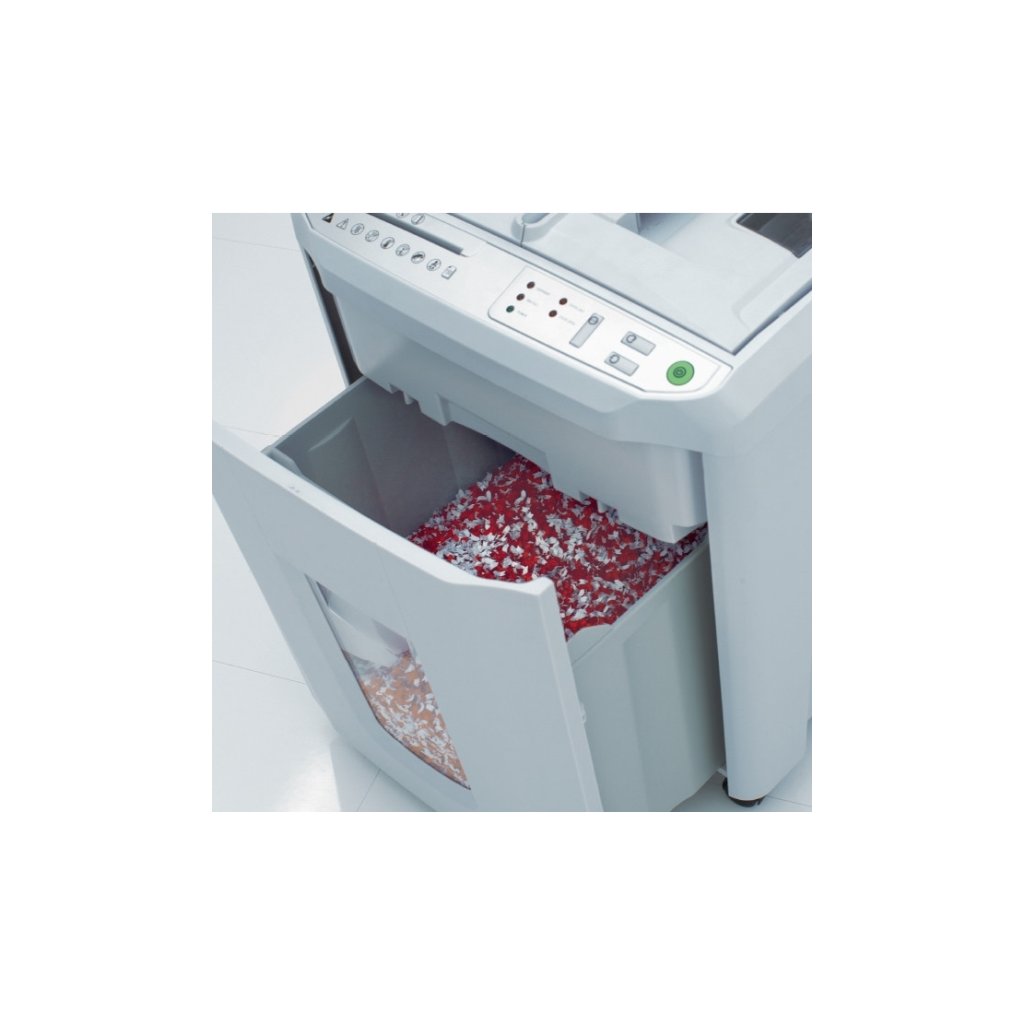 - Snadná manipulace při vyprázdnění skartovaného odpadu ( koš výsuvný z přední strany). Průzor v koši pro kontrolu zaplnění.
