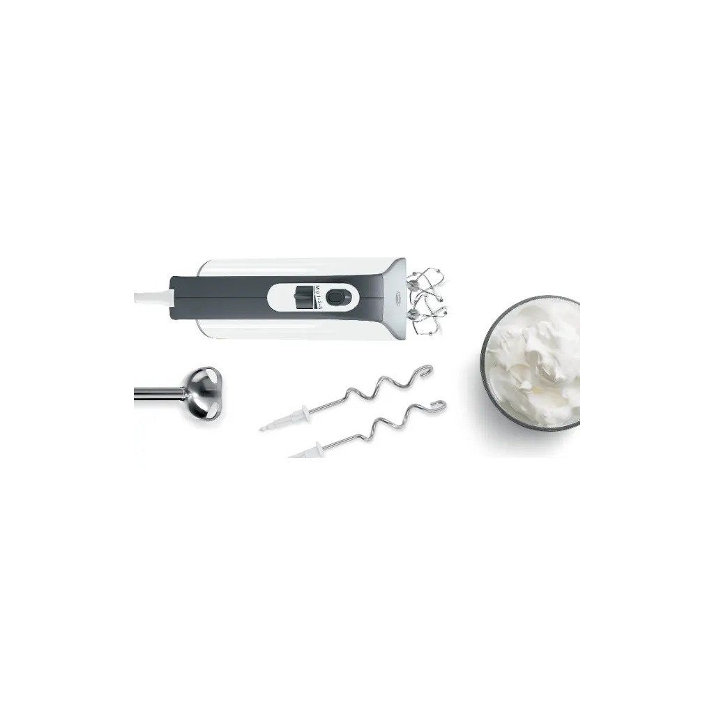 Šlehač disponuje tichým provozem, ergonomickou rukojetí s měkčeným povrchem SoftTouch a spirálovým kabelem, který zabezpečuje pohodlné ovládání. Bezpečné uvolnění příslušenství zajišťuje samostatné tlačítko.
