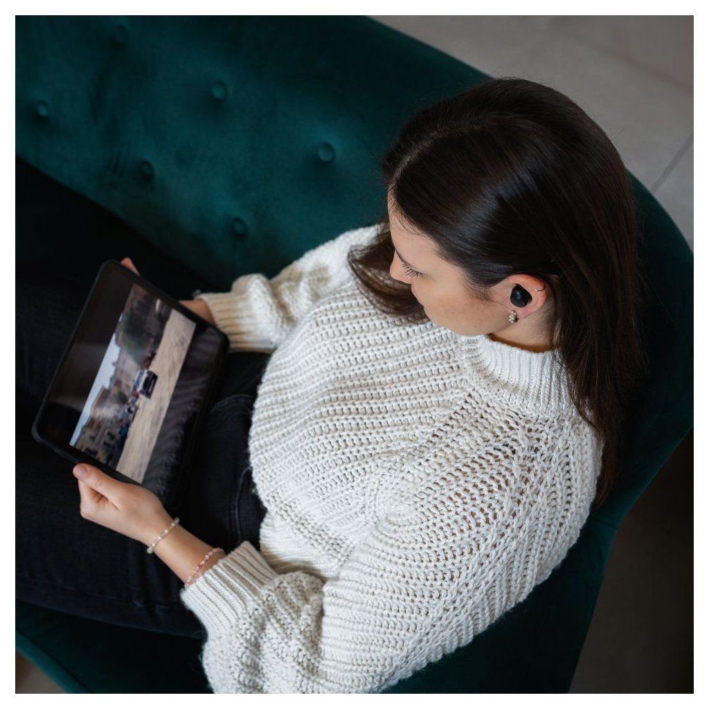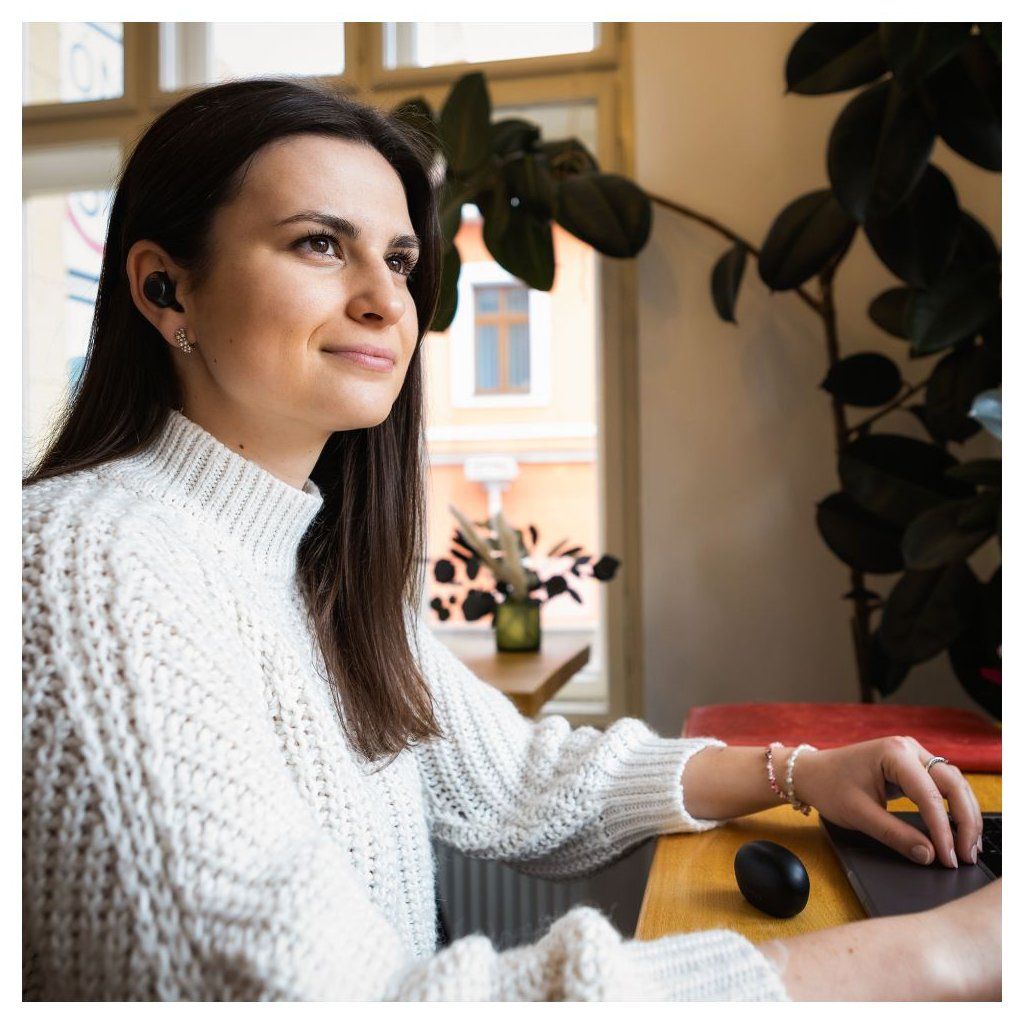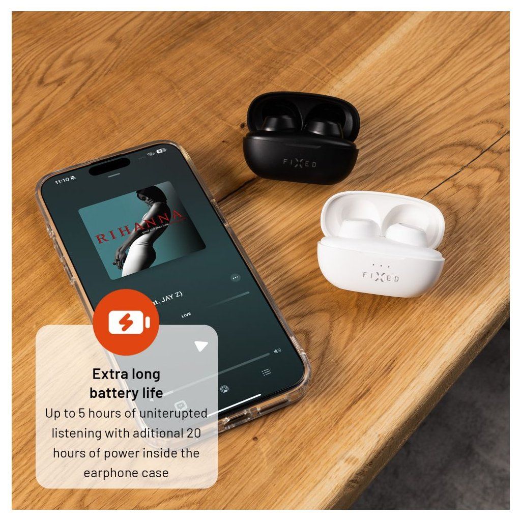 Bezdrátová sluchátka FIXED Buds nabízí skvělý zvuk obohacený o výraznější basy, které ocení i nároční uživatelé. Ergonomický tvar sluchátek s výměnnými silikonovými nástavci se perfektně přizpůsobí každému uchu a nabídne pohodlné nošení po celý den i během sportovních aktivit. Po prvním spárování se sluchátka připojí k telefonu okamžitě po vyjmutí z nabíjecího pouzdra, Master Slave technologie navíc umožňuje používat levé i pravé sluchátko samostatně. Ovládání sluchátek je velice intuitivní - přehrávání hudby, přijmutí hovoru nebo vyvolání asistenta vyřešíte pouhými dotyky na sluchátko. Kvalitní integrovaný mikrofon je ideální pro telefonní hovory nebo online konference. Spolu s nabíjecím pouzdrem vydrží sluchátka až 25 hodin poslechu, a tak bez problémů zvládnou celodenní používání. Sluchátka jsou dobíjena prostřednictvím USB-C kabelu, který naleznete v balení. Minimalistické pouzdro i sluchátka si u vás najdou své místo, ať už jste na cestě do práce, sportujete nebo jen relaxujete v parku.Vlastnosti: