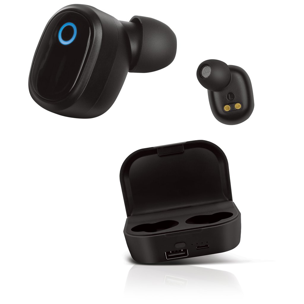 - Typ a kapacita baterie: 3,7 V 50 mAh Li-po (každé sluchátko) a 3,7 V 2200 mAh Li-Ion (nabíjecí a dokovací stanice)