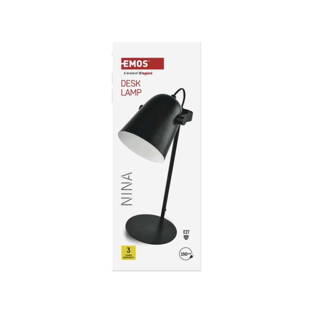 Stolní lampa EMOS NINA představuje praktické a elegantní řešení osvětlení pro pracovní stůl, noční stolek nebo čtecí kout. Díky svému jednoduchému designu v černém provedení se snadno začlení do moderního i klasického interiéru. Lampa je určena pro žárovku s paticí E27, což umožňuje volbu světelného zdroje podle individuálních potřeb uživatele.