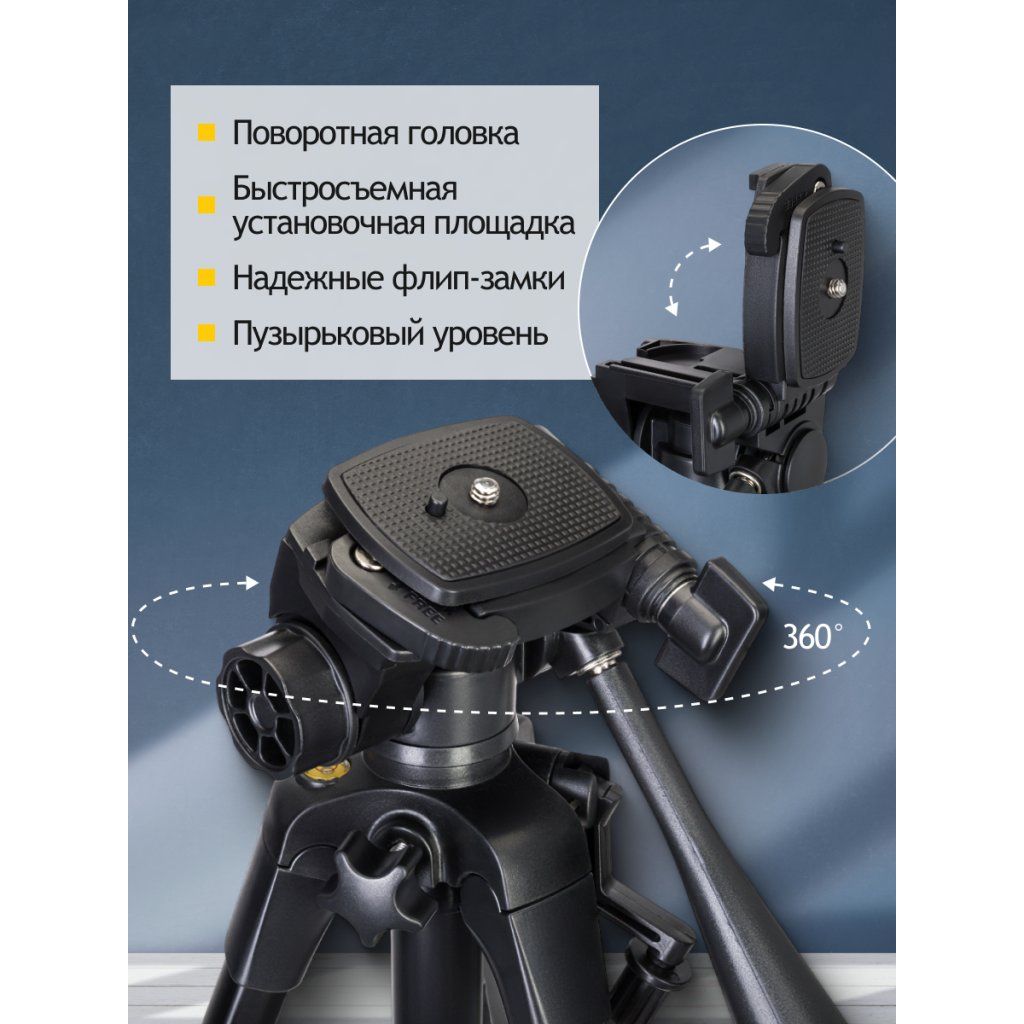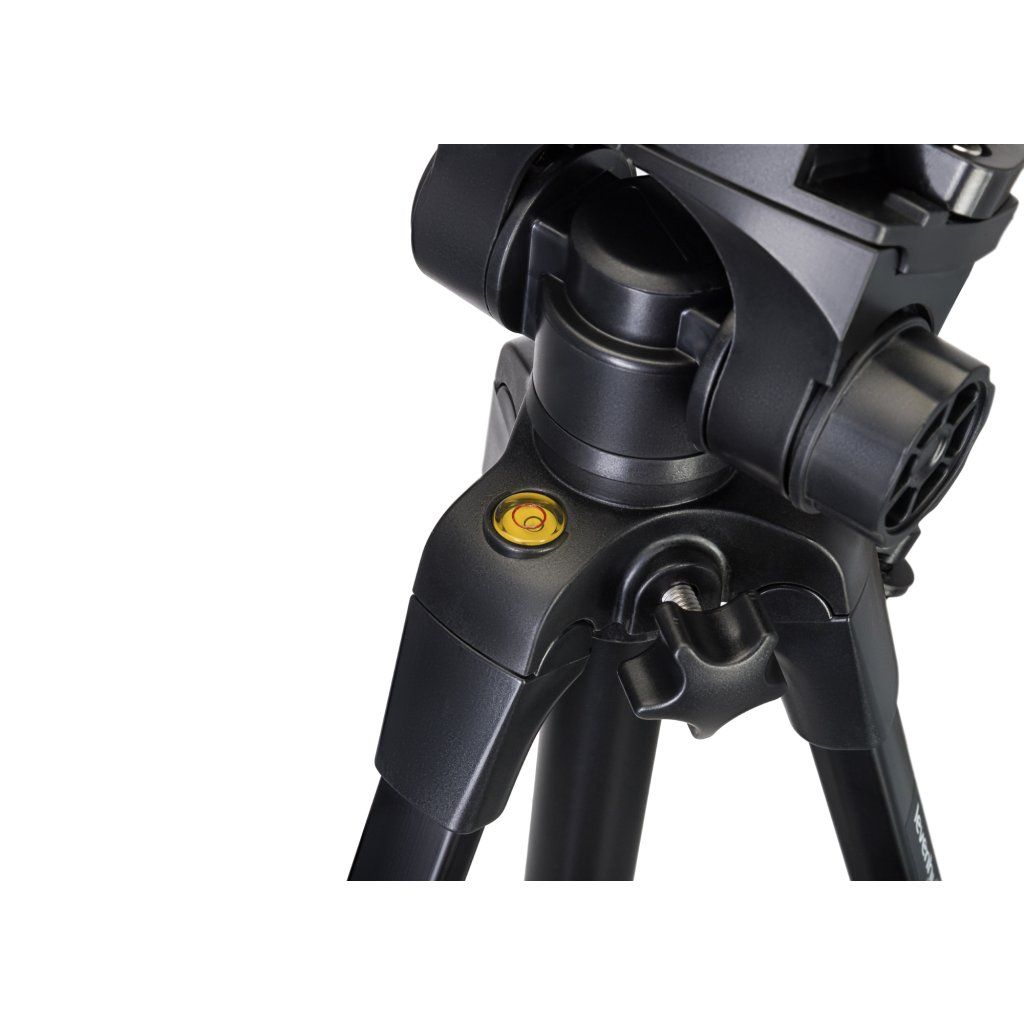 Výšku každé nohy stativu lze nastavit samostatně. Díky systému flip-lock to zvládnete rychle a snadno. Středový sloupek můžete také zvednout nebo spustit. Pro dosažení maximální stability můžete na háček středového sloupku zavěsit závaží. Maximální nosnost stativu je 5 kg. Bublinková vodováha umožňuje nastavení instalované kamery rovnoběžně se zemí.