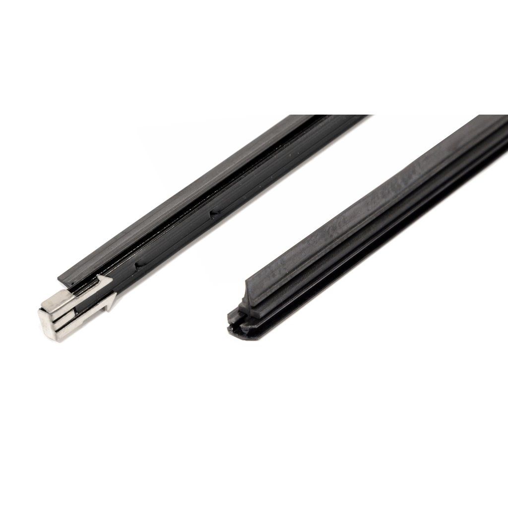 Sada 2 ks náhradních pryžových vložek do lišty stěrače. S plastovou lištou. Při použití na kratší stěrače lze gumičku zkrátit nožem. Délka 710 mm, materiál guma, barva černá.