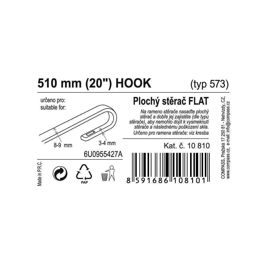 Compass Stěrač FLAT BULK (HOOK) 20"/510mm