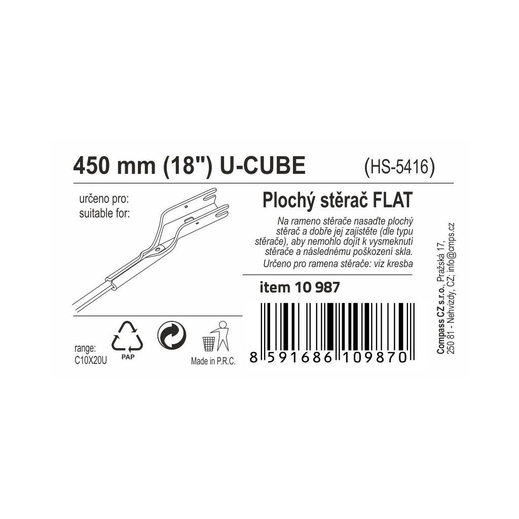 Compass Stěrač FLAT BULK (U-CUBE) 18"/450mm