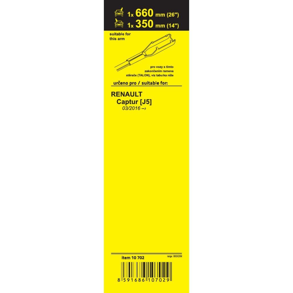 Sada dvou plochých stěračů FLAT (řidič + spolujezdec) se speciálním uchycením. Délky stěračů a systém uchycení na ramínko jsou přizpůsobeny vybraným vozům (viz tabulka použití).