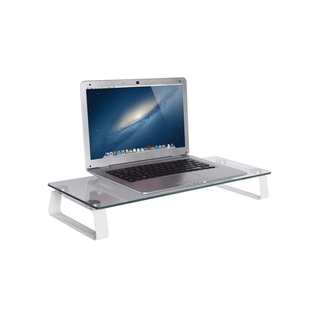 Podstavec je určen pro všechny monitory a skládá se z elegantní skleněné desky a kovové základny. Tvrzené sklo o šířce 5 mm má protiskluzové podložky ze silikonu a je celkově ergonomicky přívětivé. Kompletace probíhá bez nářadí a lze i jednoduše složit, pokud ho nebudete potřebovat. Maximální nosnost činí 20 kg.