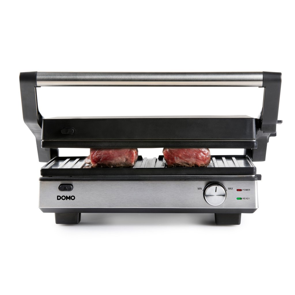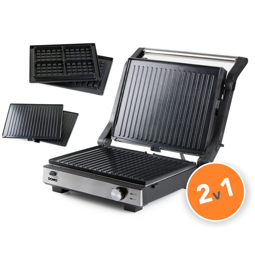 Kontaktní gril a vaflovač 2v1 DOMO DO9287G představuje ideální řešení pro všechny milovníky grilování i vaflovania. Tento univerzální spotřebič s vyměnitelnými deskami a keramickým povrchem PFAS free vám umožní připravit jak dokonalé vafle na snídani, tak šťavnaté steaky na večeři. Díky možnosti otevření o 180° získáte dvojnásobnou grilovací plochu a můžete si užít skutečné BBQ grilování i v interiéru.