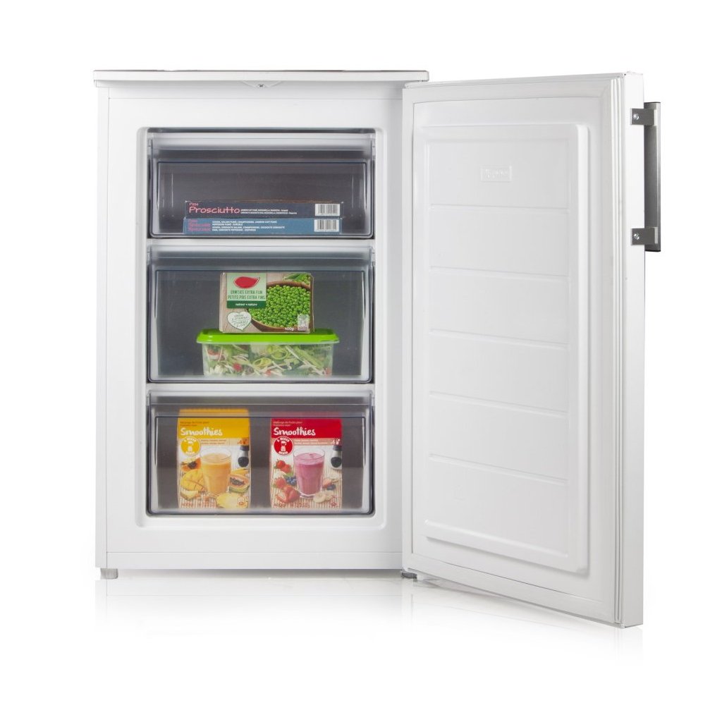 Šuplíkový mrazák DOMO DO1071DV je kompaktní volně stojící mrazák určený pro domácí použití. Nabízí celkový objem 87 litrů rozdělený do tří průhledných zásuvek, manuální odmrazování a možnost přehodit směr otevírání dveří. Díky kompaktní výšce 85 cm je vhodný do menších prostor jako jsou kuchyně, spíže nebo kanceláře, kde je potřeba spolehlivého mrazení bez zbytečných nároků na místo.