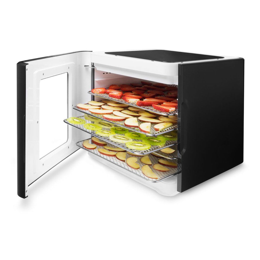 Svěřte úkol uchování potravin jako ovoce, zeleniny, masa, bylinek a dalšího naší sušičce Philco PHFD7067. Perfektního výsledku dosáhnete díky silnému motoru, který rozproudí teplý vzduch rovnoměrně celým vnitřním prostorem sušičky, a vy se nebudete muset starat naprosto o nic krom počátečního nastavení doby přípravy a teploty. Díky horizontálnímu proudění vzduchu je teplota ve všech úrovních stejná a vy se nemusíte obtěžovat přehazováním jednotlivých plat během procesu dehydratace. Sušení patří mezi nejzdravější způsob konzervování potravin s 97% mírou retence vitamínů a minerálů. 6 nerezových plat o velikosti 30x25 cm zajistí dostatečný prostor pro vaše sušení. Součástí sušičky je pak i vyjímatelný tácek na zbytkovou vodu a případný nepořádek, který vznikne na dně během sušení. Je jednoduché jej vyjmout, umýt a opět umístit pro další várku. Nadčasový design a moderní antracitová barva se bude vyjímat ve všech interiérech. Snadné dotykové ovládání a přehledný displej umožní každému obsluhovat tento spotřebič.