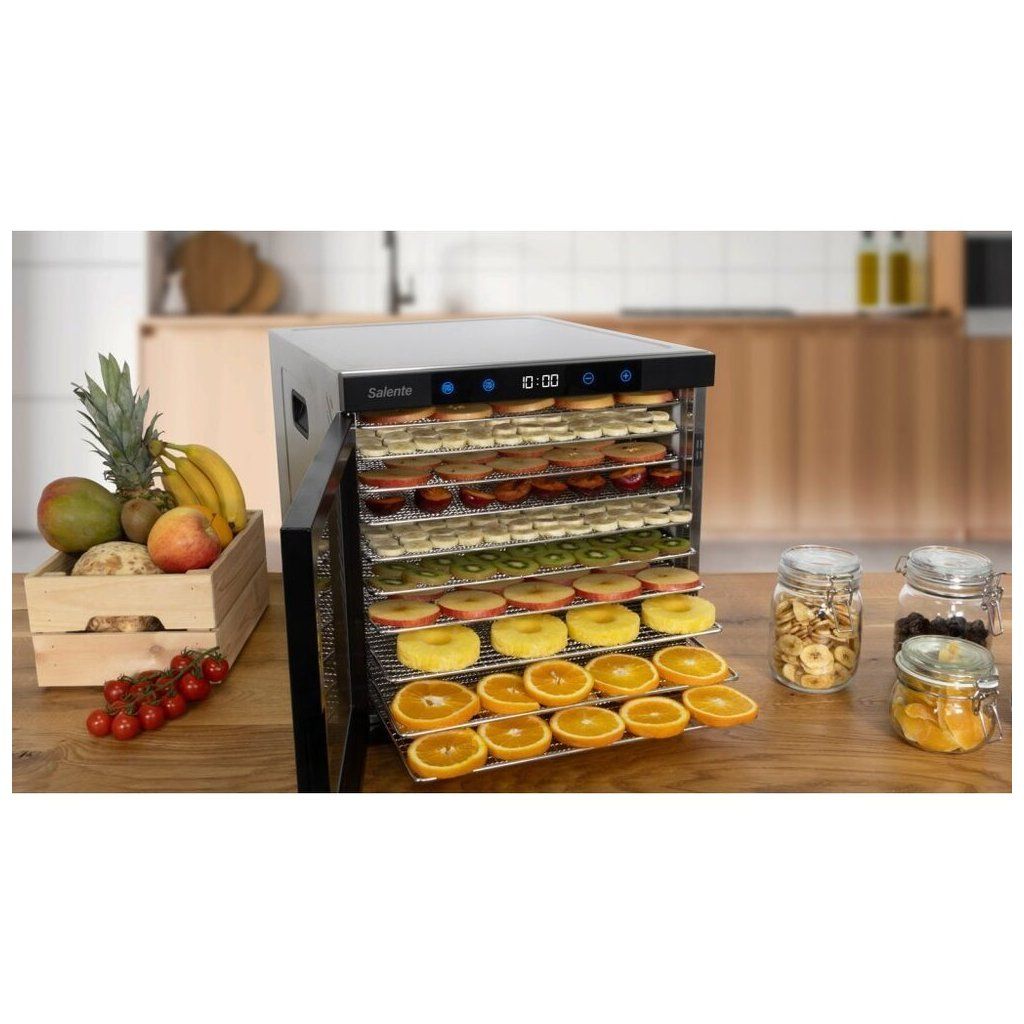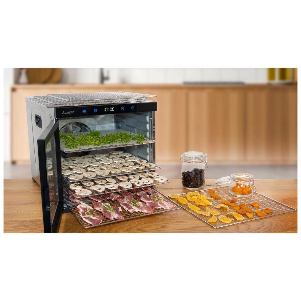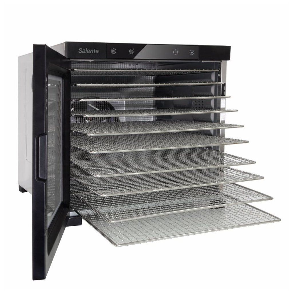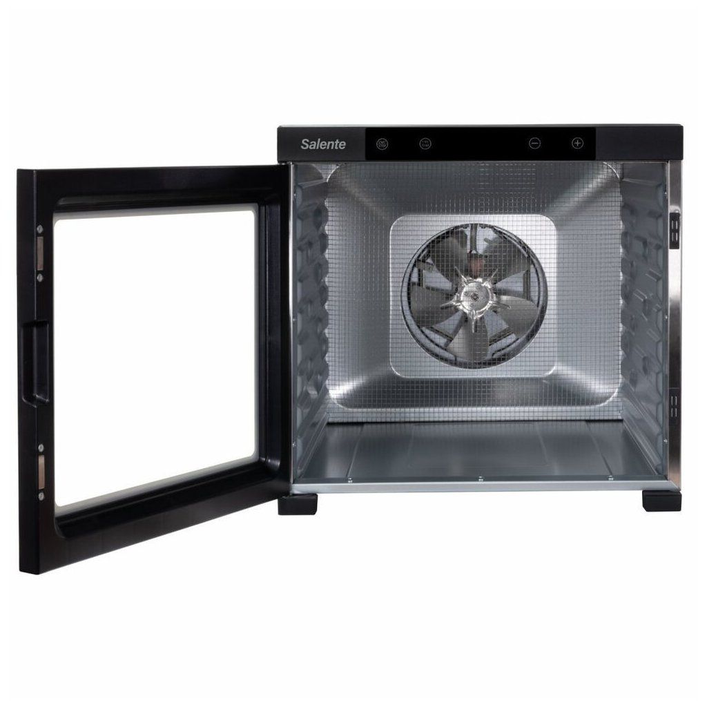 Celonerezová profesionální sušička Salente QuickDry nabízí rovnoměrné sušení hub, ovoce, zeleniny, bylinek, čaje a dalších surovin s maximálním uživatelským komfortem díky senzorickému dotykovému ovládacímu panelu s digitálním displejem a velmi jednoduchým nastavením teploty i času s možností libovolné změny nastavených hodnot i v průběhu sušení. Teplotu lze nastavit v rozsahu 35-75 °C v krocích po 5 °C, čas lze nastavit v rozsahu 30 min. až 24 hodin v krocích po 30 minutách. Díky použitým materiálům má prodlouženou životnost a velmi snadno se udržuje a čistí.