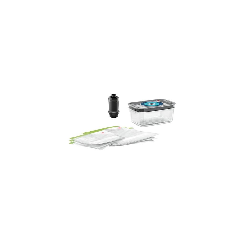 Vakuovací nástavec 3ks vakuový sáček 3,8 l 3ks vakuový sáček 1,2 l Vakuová dóza 1,2 l Kompatibilní s vakuovacím nástavcem ErgoMixx, ErgoMixx Style.Doplňkové parametry
