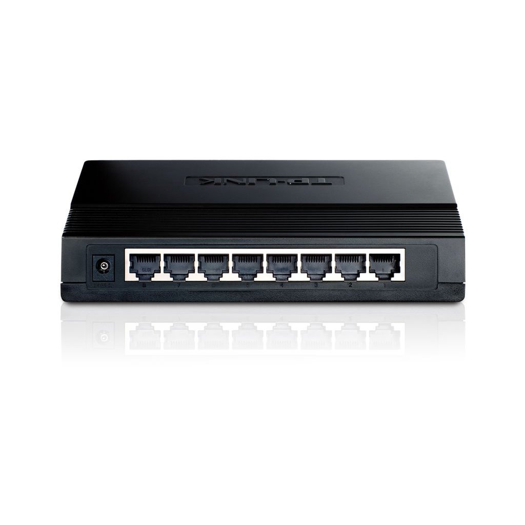 TL-SG1008D je vysokorychlostní gigabitový switch, který je ideální řešení pro pracovní skupiny. S 8x 10/100/1000BASE-T gigabitovými Ethernet porty s AUTO-MDIX je jeho maximální rychlost 2000Mbps ve full duplex modu. Jednoduše viditelné LED indikátory zobrazují instalací kabelů a diagnostiku. Switch má plastový case a malé stolní provedení.