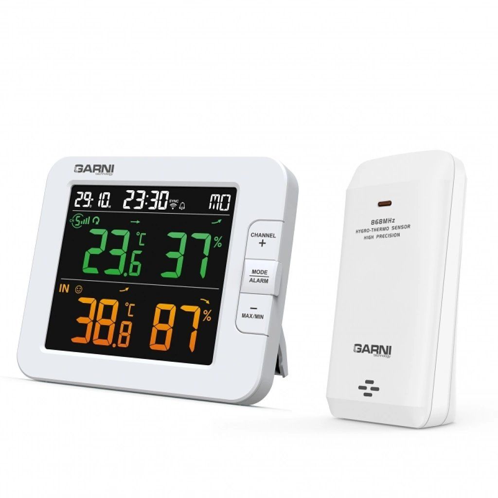 Chytrý vícekanálový teploměr s vlhkoměrem, model GARNI 419T má vestavěný modul WiFi a prostřednictvím svého chytrého systému je kompatibilní s platformou Tuya IOT. Pomocí aplikace Tuya Smart můžete sledovat teplotu a relativní vlhkost hlavní jednotky a bezdrátových čidel, kontrolovat historii záznamů, nastavovat alarmy pro dané veličiny, spouštět pokročilé funkce za pomocí naměřených hodnot a naměřená data odeslat na email v Excel souboru. Je možné jej propojit s dalšími produkty chytré domácnosti, ovládání pak probíhá přes aplikaci v mobilním zařízení. Hlavní jednotka i bezdrátové čidlo jsou osazeny švýcarskými čidly SENSIRION.
