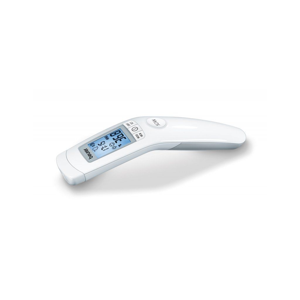 Beurer FT 90 je bezkontaktní infračervený teploměr, který změří teplotu těla a objektů během pár vteřin. Právě nulový kontakt s pokožkou zajišťuje vysokou míru hygieny a bezpečnosti. Díky 60 paměťovým místům je vhodný zejména pro měření teploty dětí, jelikož je zde možnost zpětného sledování změn teplot. Velký, modře podvětlený, displej je velmi snadno čitelný a díky zvukovému signálu při dokončení měření se bez zbytečného čekání dozvíte výsledek. Teploměr navíc disponuje automatickým vypnutím při delším nepoužívání, což šetří baterie.