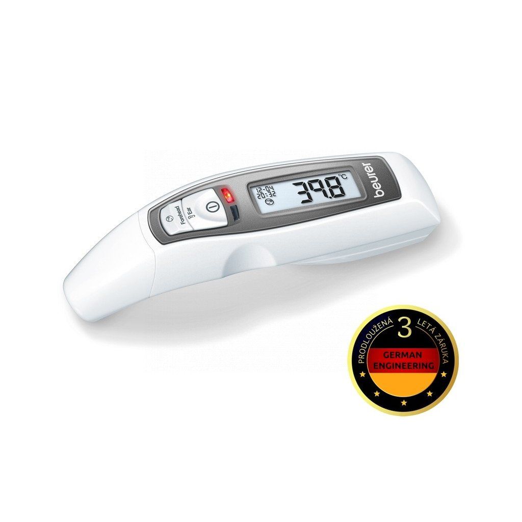 Digitální multifunkční teploměr 6 v 1 Beurer FT 65 se kterým lze měřit tělesnou teplotu na čele, v uchu, nebo teplotu povrchu předmětů, okolí a kapalin. LED kontrolka Vás barevně upozorní na horečku, velký dobře čitelný displej, teplota je změřena během cca 1 sekundy. Zvláště vhodný pro děti. Ukazuje datum a čas, automatické vypínání, 10 paměťových míst. Novinka na www.muj-beurer.cz