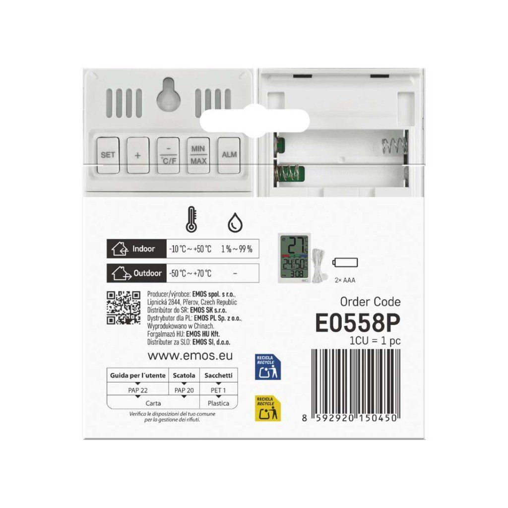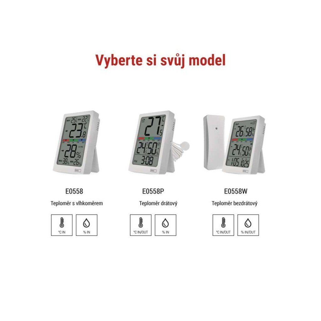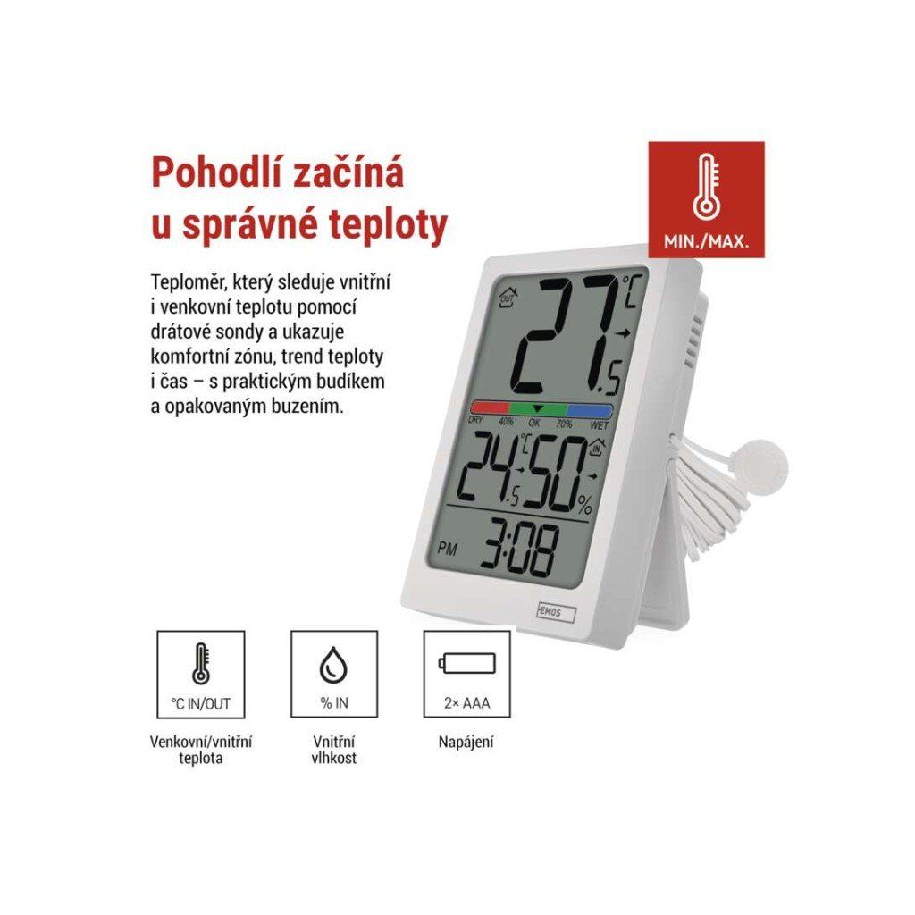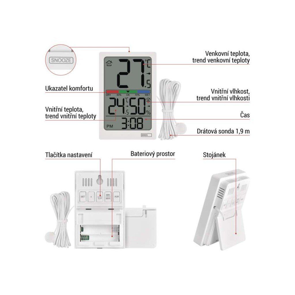 Digitální teploměr EMOS E0558P – drátový teploměr s vlhkoměrem a budíkem
