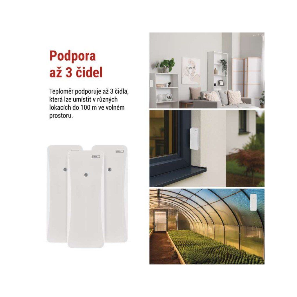 - Možnost připojení čidel: Až 3 čidla (typ E00387, není součástí balení)