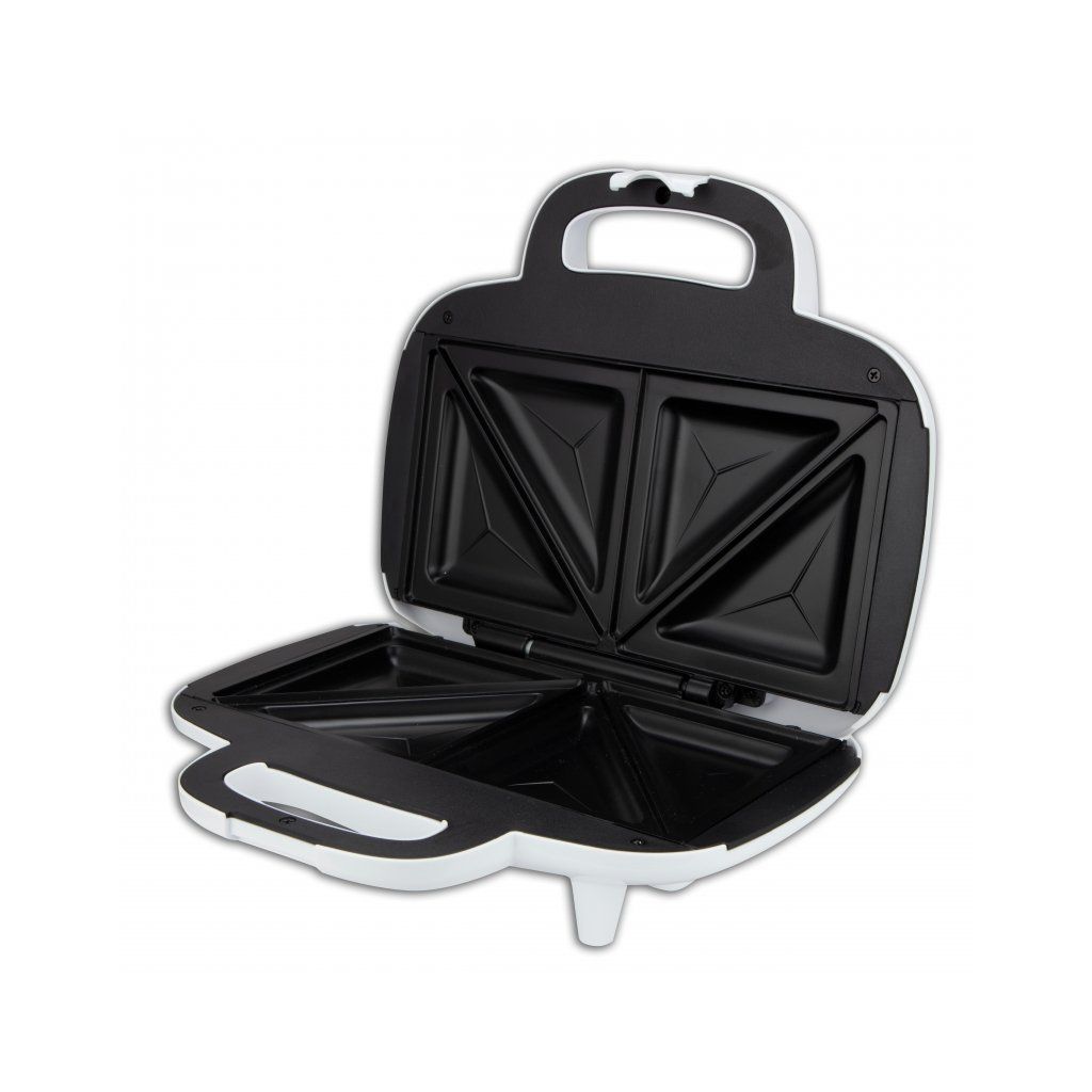 Sendvičovač Bravo B 4877 je v trojúhelníkovém provedení. Bezpečnou manipulaci zajišťuje tepelně izolovaný držák.