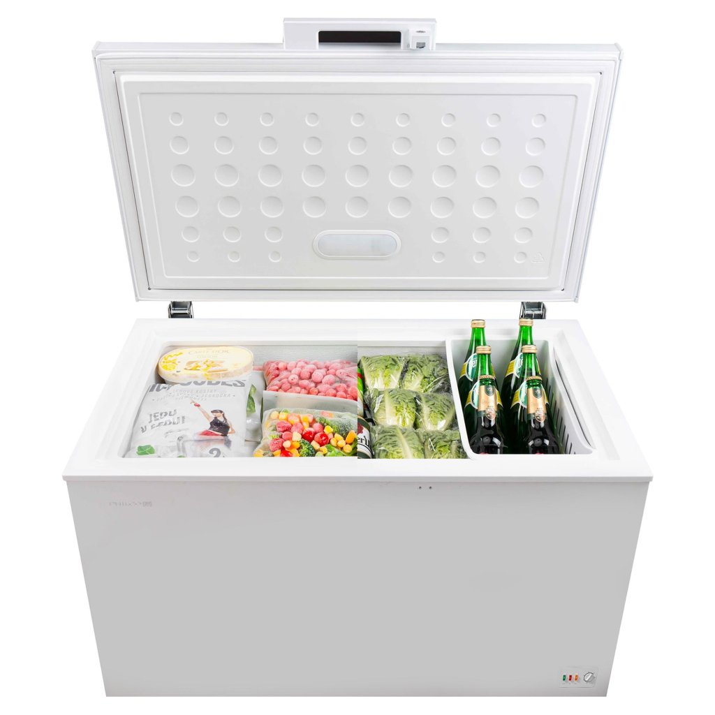- LED osvětlení: Poskytuje přehledné vnitřní osvětlení mrazničky.