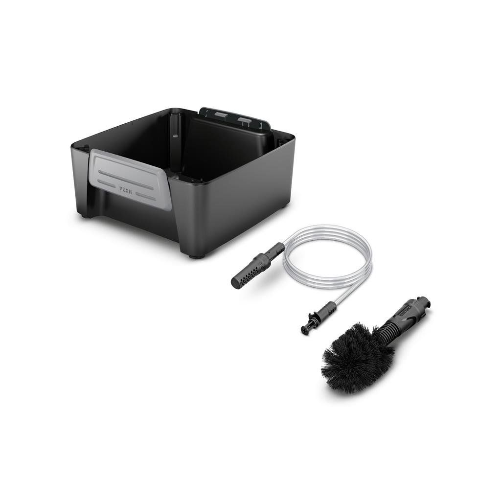 Dokonalé, pokud jste hodně na cestách: Box Adventure s optimálně zvoleným příslušenstvím pro čištění outdoorového vybavení kdekoli. Univerzální kartáč připojitelný na pistoli uvolní i silně ulpívající nečistoty měkkými štětinami a odplaví je pryč. Díky sací hadici využijete i alternativní vodní zdroje jako studny nebo kanystry. V neposlední řadě lze příslušenství uschovat i v praktickém boxu, který bez problémů připevníte na tlakový čistič.
