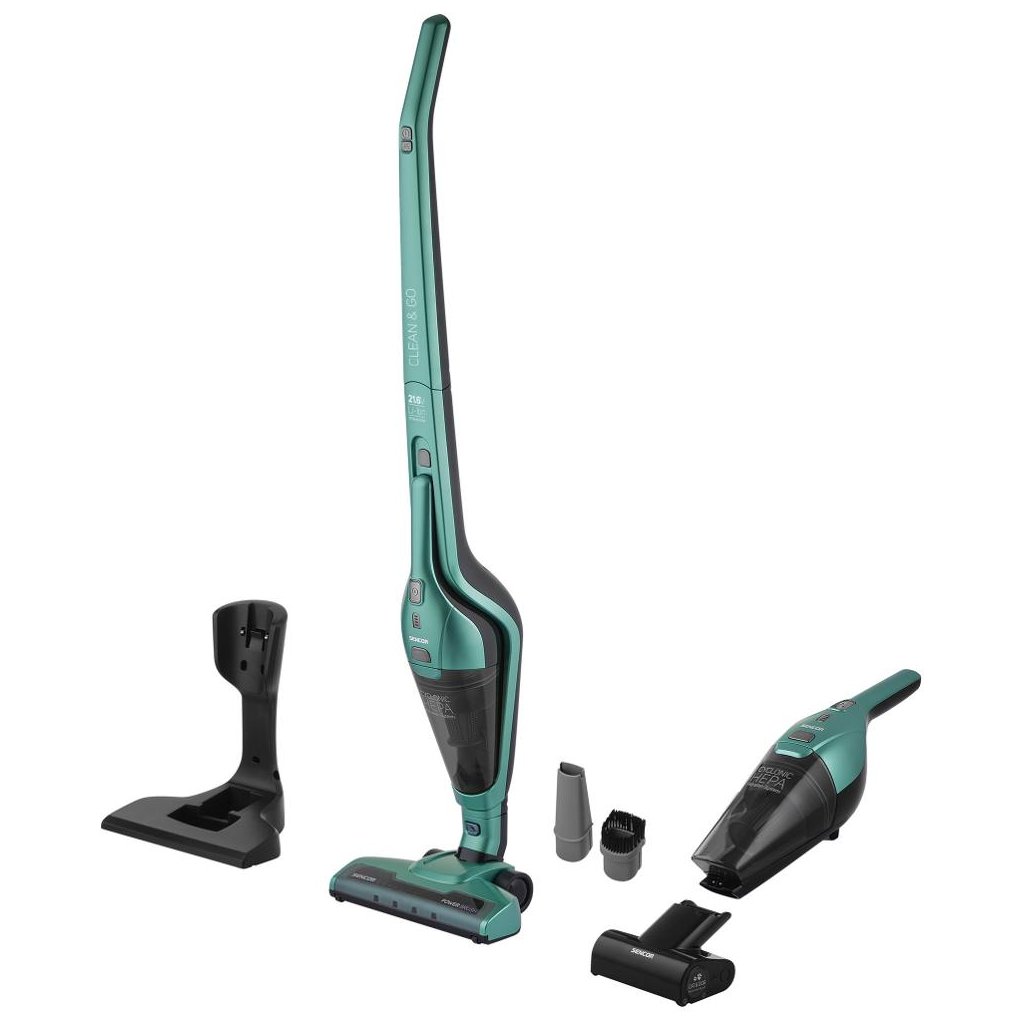 Tyčový vysavač Sencor SVC 0601GR 3 v 1 se samostatnou ruční jednotkou efektivně vysává podlahy i koberce. Odnímatelná ruční jednotka je dokonalým pomocníkem pro čištění prachu na nábytku nebo v interiéru auta. Díky motorizovanému kartáči Cat & Dog Mini si poradí se zvířecími chlupy, koberečky i úklidem čalounění. S nasazenou štěrbinovou hubicí vyčistíte také spáry. Za pomoci integrované 21,6V Li-Ion baterie s kapacitou 2 000 mAh dokáže vysavač pracovat až 45 min na jediné nabití. Navíc efektivně osvětluje prostor úklidu pomocí praktického LED světla, které je umístěno na hubici vysavače. Prach a nečistoty jsou odvedeny do vnitřní nádoby s kapacitou 0,5 l. K vysavači se dodává nabíjecí základna, kam můžete vysavač po použití pohodlně umístit a dobít baterii.