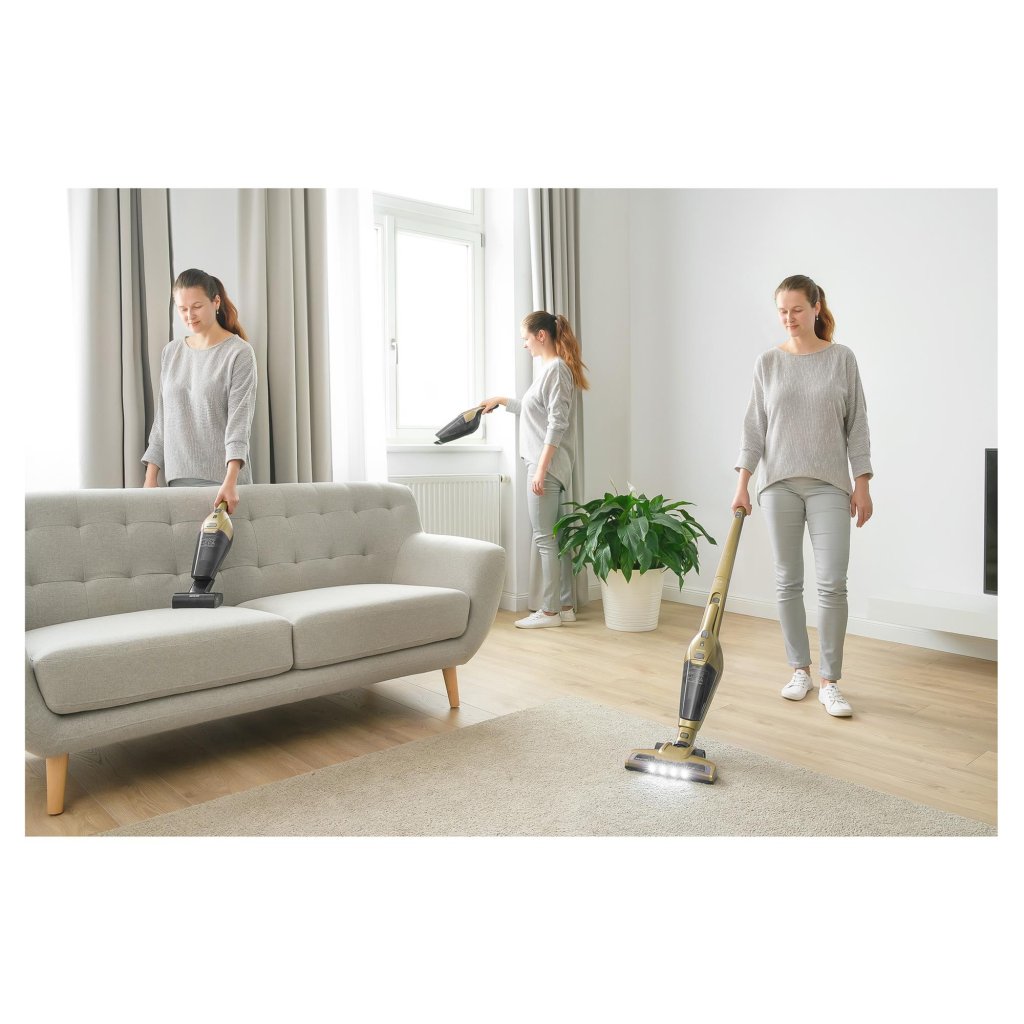 Tyčový vysavač Sencor SVC 0607CH 3 v 1 se samostatnou ruční jednotkou efektivně vysává podlahy i koberce. Odnímatelná ruční jednotka je dokonalým pomocníkem pro čištění prachu na nábytku nebo v interiéru auta. Díky motorizovanému kartáči Cat & Dog Mini si poradí se zvířecími chlupy, koberečky i úklidem čalounění. S nasazenou štěrbinovou hubicí vyčistíte také spáry. Za pomoci integrované 21,6V Li-Ion baterie s kapacitou 2 000 mAh dokáže vysavač pracovat až 45 min na jediné nabití. Navíc efektivně osvětluje prostor úklidu pomocí praktického LED světla, které je umístěno na hubici vysavače. Prach a nečistoty jsou odvedeny do vnitřní nádoby s kapacitou 0,5 l. K vysavači se dodává nabíjecí základna, kam můžete vysavač po použití pohodlně umístit a dobít baterii.
