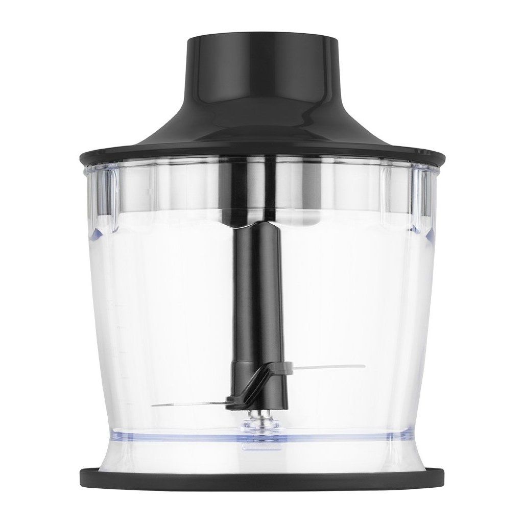 V praktickém stojánku je uložen kotouč pro přípravu majonéz a výměnné nože pro sekání a mletí. V základní výbavě má chopper i šlehací metlu, speciální nádobu pro přípravu majonézy nebo silikonový kartáč na mytí lahví.