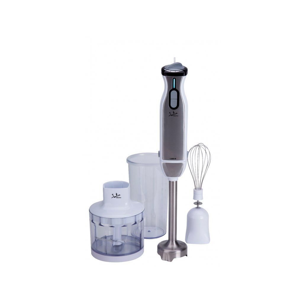 Tyčový mixér Jata BT199 je výkonný ruční mixér určený pro přípravu polévek, pyré, smoothie a dalších pokrmů. Díky příkonu 1000 W a odnímatelnému kovovému nástavci s dvojitým titanovým nožem nabídne spolehlivý výkon při mixování i pasírování. Přístroj je vybaven elektronickou regulací rychlosti a sadou příslušenství, která zvyšují jeho univerzálnost v domácí kuchyni.