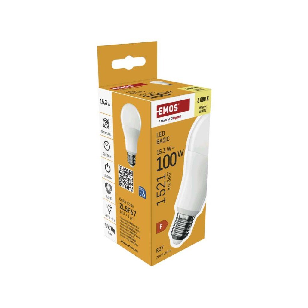 Emos LED žárovka Basic A60 / E27 / 15,3W (100 W) / 1521 lm / teplá bílá