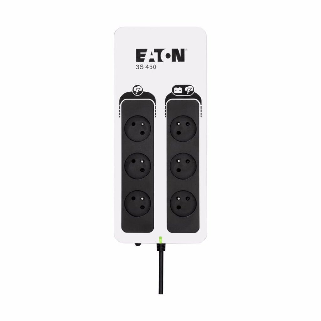 Eaton 3S450FUPS Eaton 3S pomáhá chránit vaši výpočetní techniku v případě výskytu nežádoucích jevů a událostí, jako jsou atmosférické výboje, bouřky, přetížení rozvodné sítě, poruchy a živelné události, způsobující bez předchozího varování výpadky napájení z elektrorozvodné sítě. Při úplném výpadku poskytuje UPS záložní napájení z baterie až třem z šesti připojitelných zařízení. Díky atraktivnímu designu a líbivé povrchové úpravě UPS 3S dokonale zapadne do moderního kancelářského prostředí.