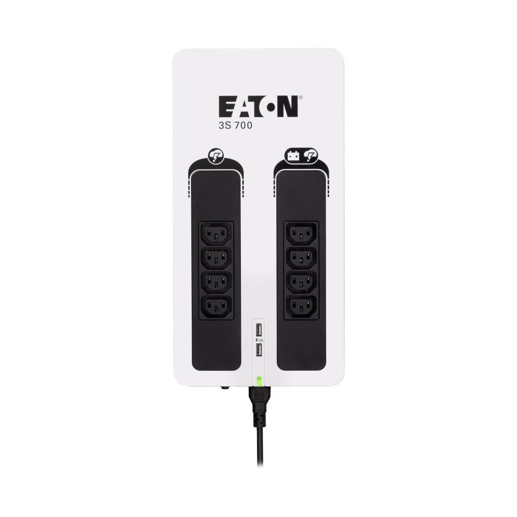 Eaton 3S700IUPS Eaton 3S pomáhá chránit vaši výpočetní techniku v případě výskytu nežádoucích jevů a událostí, jako jsou atmosférické výboje, bouřky, přetížení rozvodné sítě, poruchy a živelné události, způsobující bez předchozího varování výpadky napájení z elektrorozvodné sítě. Při úplném výpadku poskytuje UPS záložní napájení z baterie až čtyřem z osmi připojitelných zařízení. Tento záložní zdroj též chrání telefonní, širokopásmové a Ethernetové připojení proti přepětí. Software pro odstavení umožňuje automatické uložení rozpracovaných úloh a ukončení vašich aplikací bez ztráty dat díky propojení USB portem. Po obnovení napájení budete moci pokračovat přesně z bodu, ve kterém jste aplikaci ukončili. Díky atraktivnímu designu a líbivé povrchové úpravě UPS 3S dokonale zapadne do moderního kancelářského prostředí.