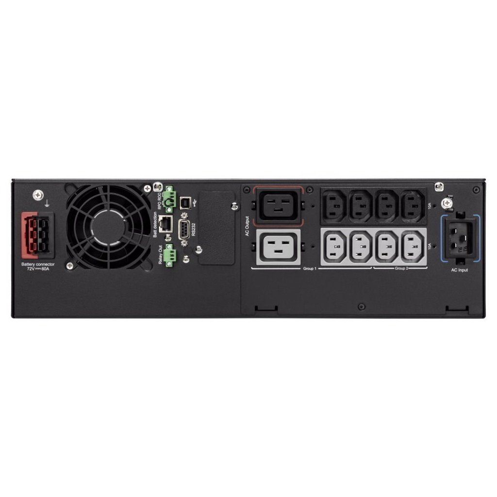 Výstupní zásuvky: 8× IEC-320-C13, 2× IEC-320-C19Jmenovité napětí: AC 230 V (nastavitelné na 200/208/220/230/240 V)