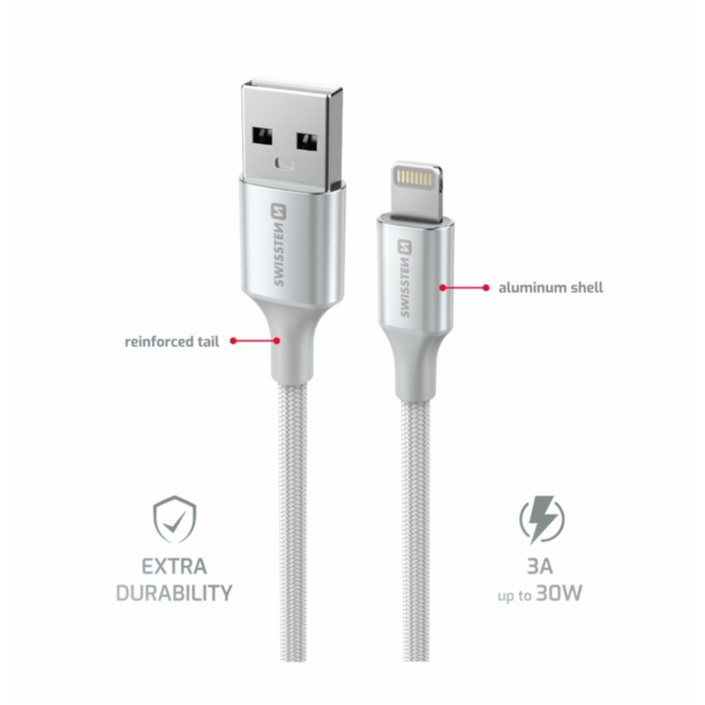 Swissten Datový kabel textile II USB Lightning 1,5 m bílý