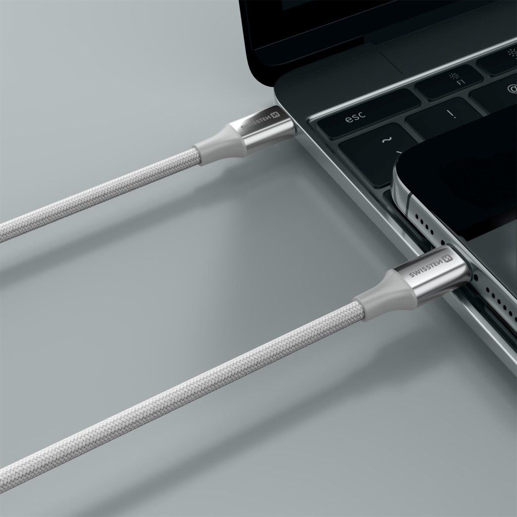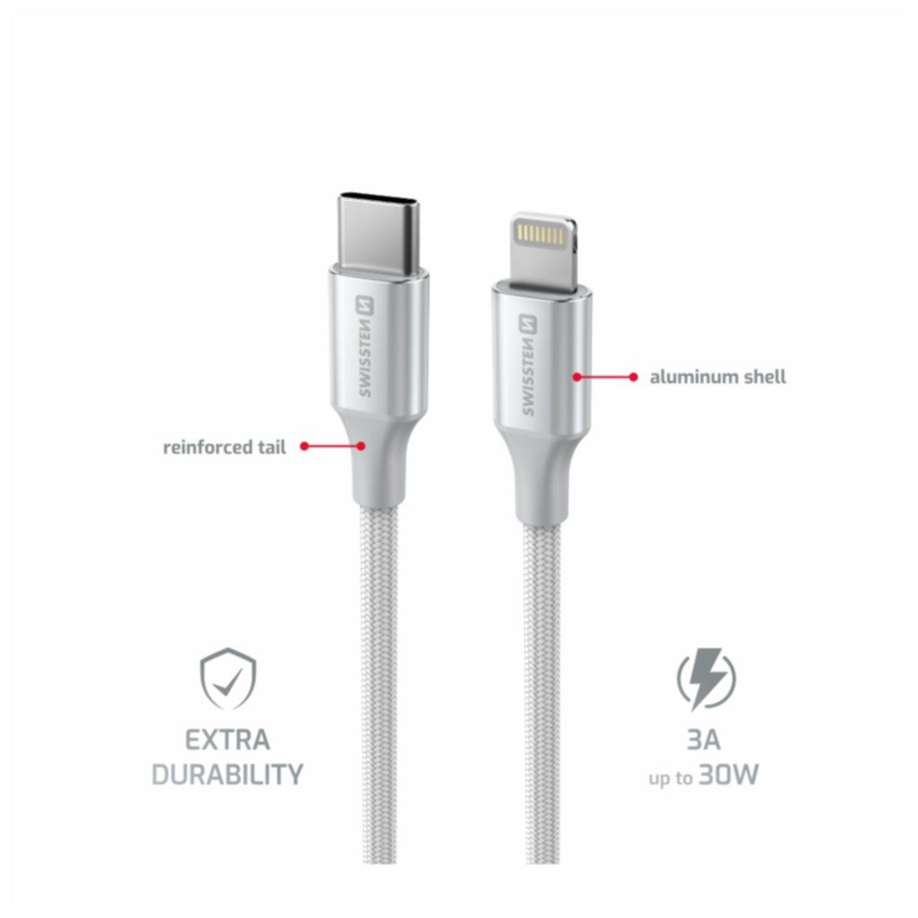 Swissten Datový kabel textile II USB-C Lightning 1,5 m bílý