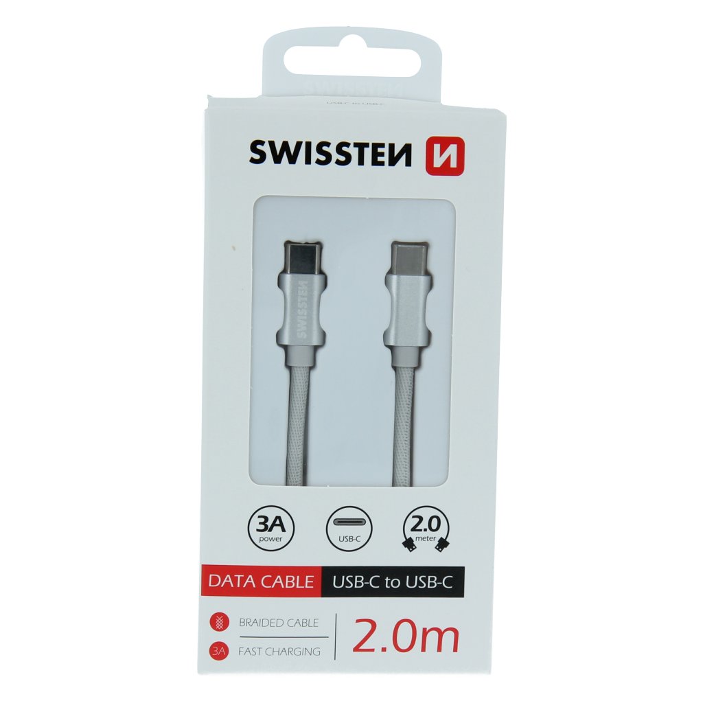 Swissten datový kabel textile USB-C - USB-C 2,0 m stříbrný
