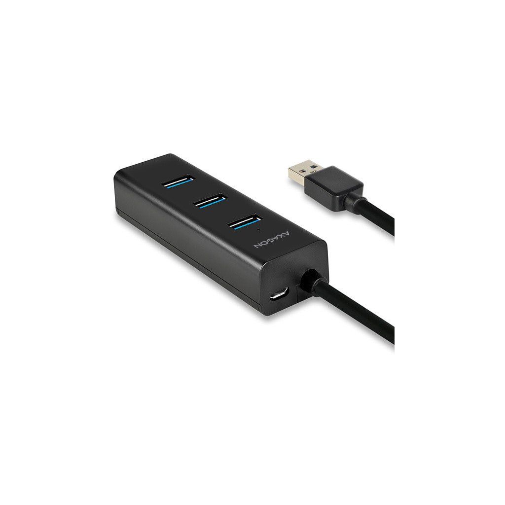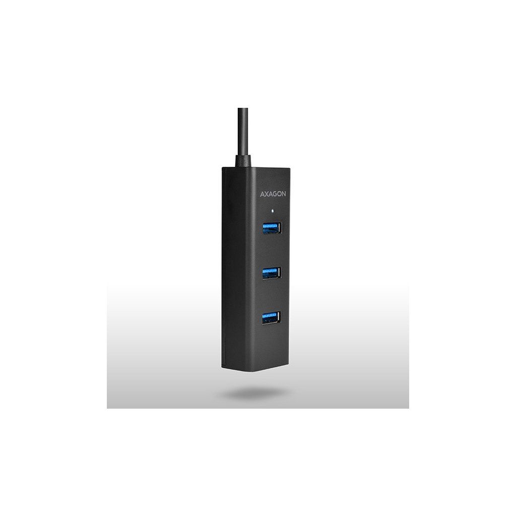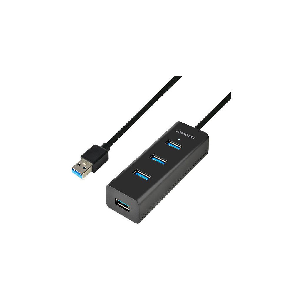 4-portový USB 3.0 hub AXAGON HUE-S2B s možností externího napájení a podporou rychlonabíjení na všech portech.Lehký malý rozbočovač s elegantním matným plastovým tělem připojí snadno a rychle k počítači až čtyři USB zařízení současně.