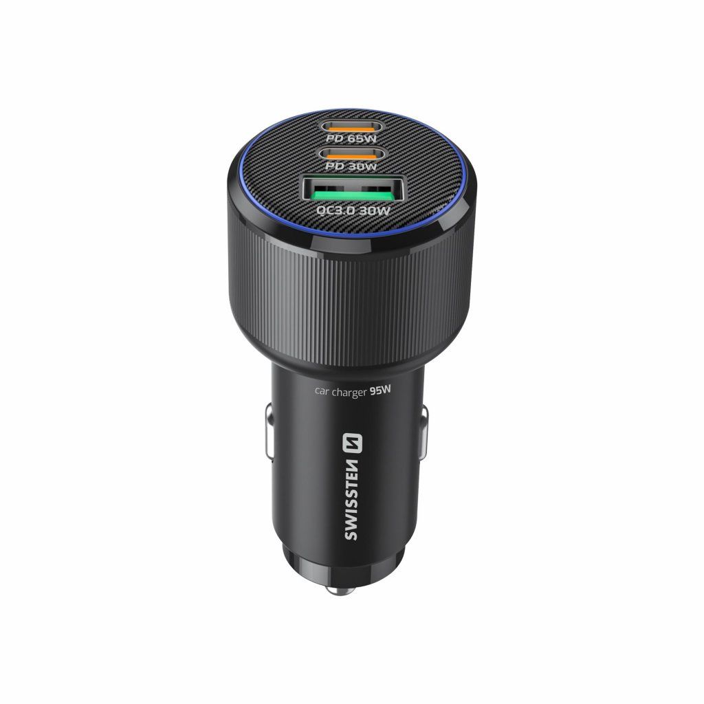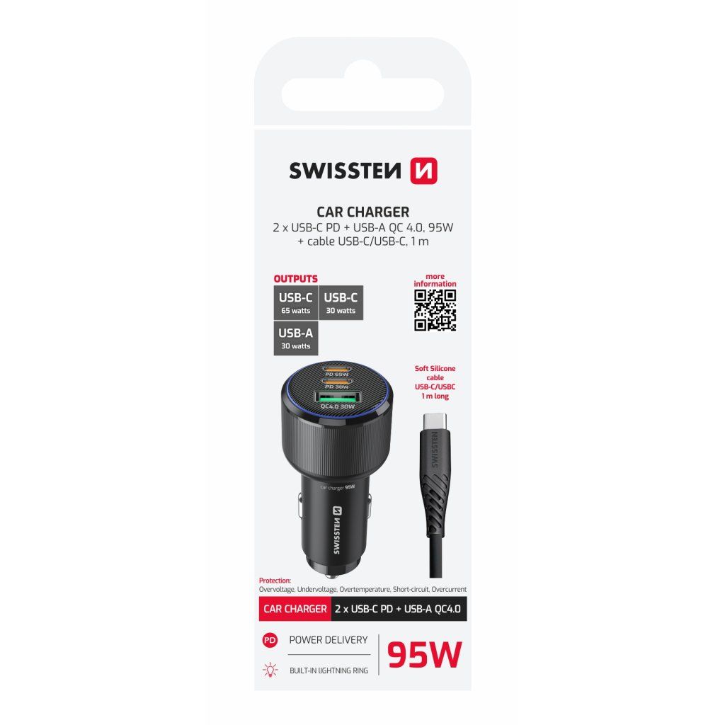 SWISSTEN Adaptér 2x USB-C PD + USB-A, 95 W – autonabíječka s USB-C kabelem