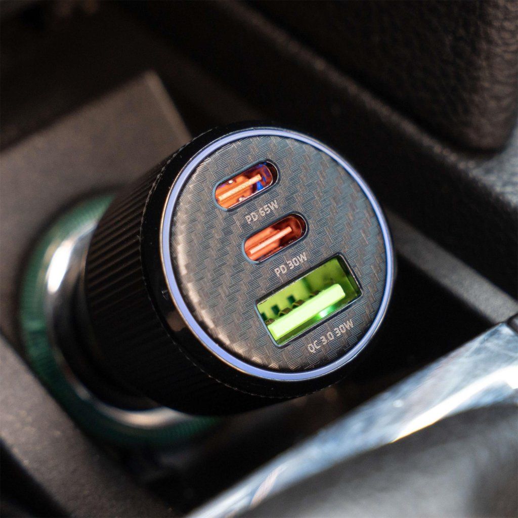 - Tři nabíjecí porty: 2× USB-C s Power Delivery a 1× USB-A pro nabíjení více zařízení současně.
