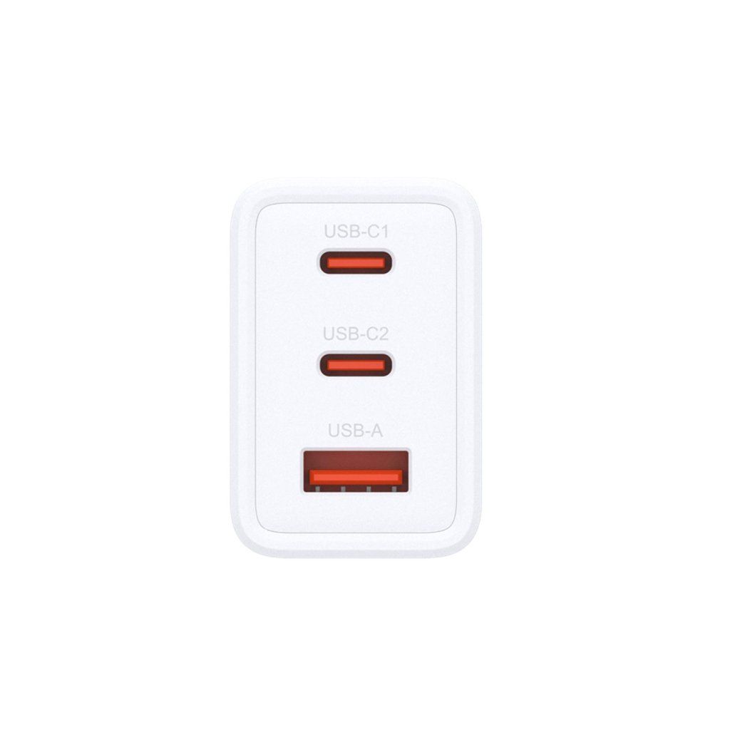 - Tři porty (USB-C/USB-A): Konfigurace USB-C x 2 a USB-A x 1 umožňuje dobíjet až tři zařízení současně.