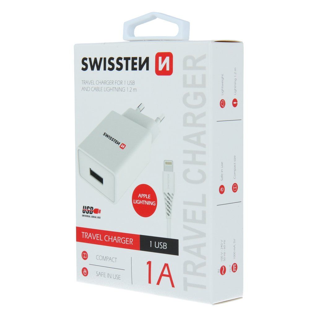 Kvalitní nabíječka SWISSTEN s výstupním proudem 1A. Nabíječka má výstup 1x USB a kabel USB/lightning 1,2m. Baleno v blistru SWISSTENSpecifikace: