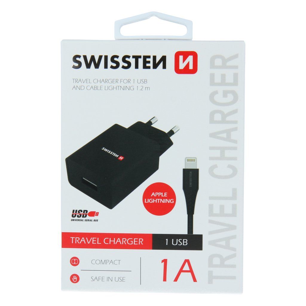 Kvalitní nabíječka SWISSTEN s výstupním proudem 1A. Nabíječka má výstup 1xUSB a kabel USB/lightning 1,2m. Baleno v blistru SWISSTENSpecifikace: