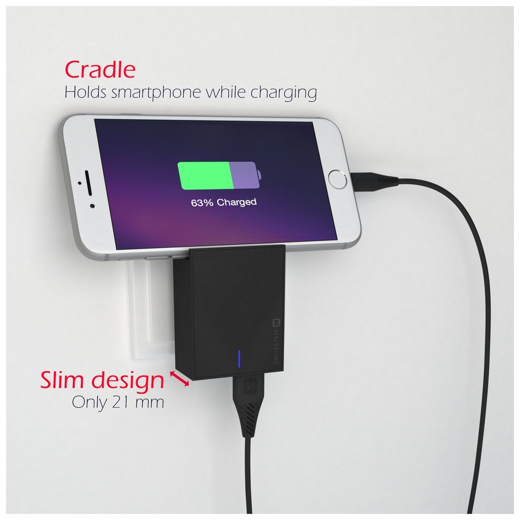 Jedinečná SLIM nabíječka s výstupním proudem 3A, technologií Smart IC, stojánkem pro umístění smartphonu, dvěma USB porty. Lze využít za nábytek, do zásuvky ve volném prostoru nebo kdekoliv jako držák smartphonu. V balení 1,2 m dlouhý kabel pro Apple. Baleno v blistru SWISSTENSmart IC