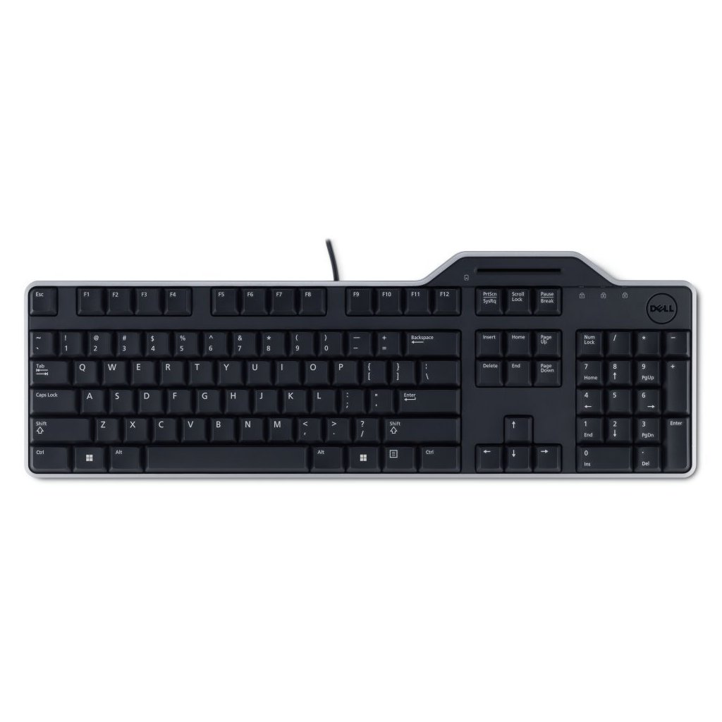 Klávesnice KB813 se čtečkou čipových karet od společnosti Dell™ nabízí vysoké zabezpečení. Jde o komplexní řešení pro ochranu dat a duševního vlastnictví díky pohodlné a stylové klávesnici s integrovanou čtečkou čipových karet. Tato klávesnice se čtečkou čipových karet nabízí pro pohodlné psaní dlouhodobou výdrž, odolnost proti polití, nízká a tichá tlačítka a odnímatelnou opěrku na dlaně. Připojení kabelem zajišťuje bezpečné a rychlé přenosy dat a ověřování. Kabel USB lze snadno připojit prakticky ke všem počítačům Dell. Tento výrobek byl testován a ověřen se zařízeními Dell. Pokud ho používáte se zařízením Dell, vztahuje se na něj technická podpora společnosti Dell.